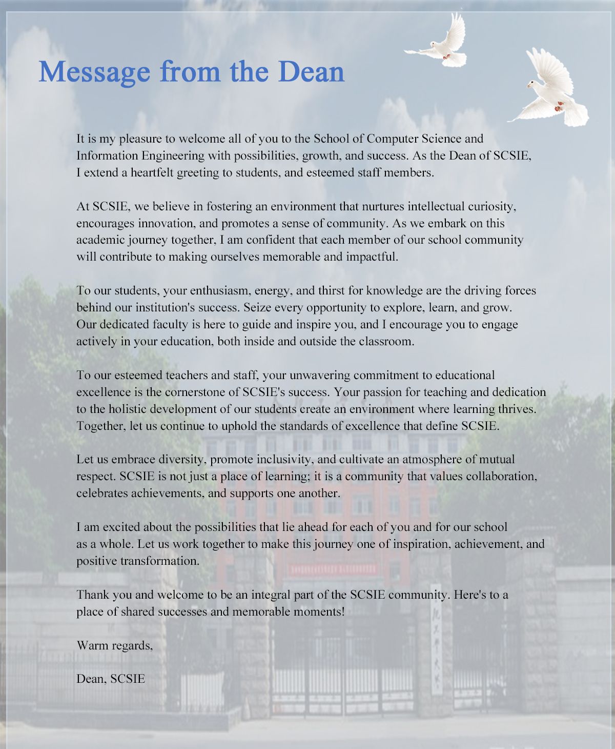 Message From the Dean