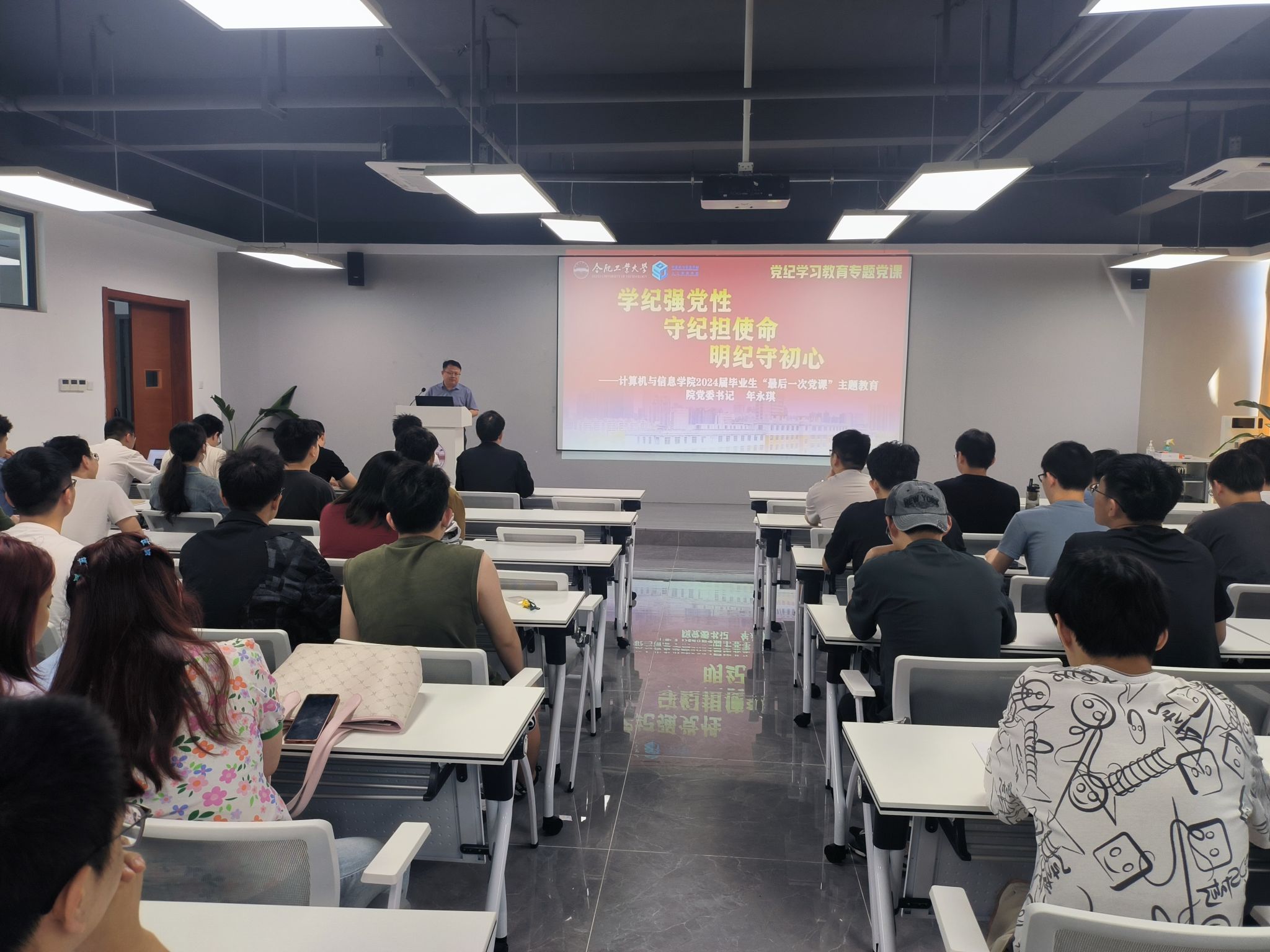 在科教楼B座503报告厅开展“学纪强党性,守纪担使命,明纪守初心”毕业班离校前“最后一堂党课”暨廉洁从业教育主题活动,学院党委书记年永琪、毕业班辅导员、全体2024届本科生、研究生党员参加活动。