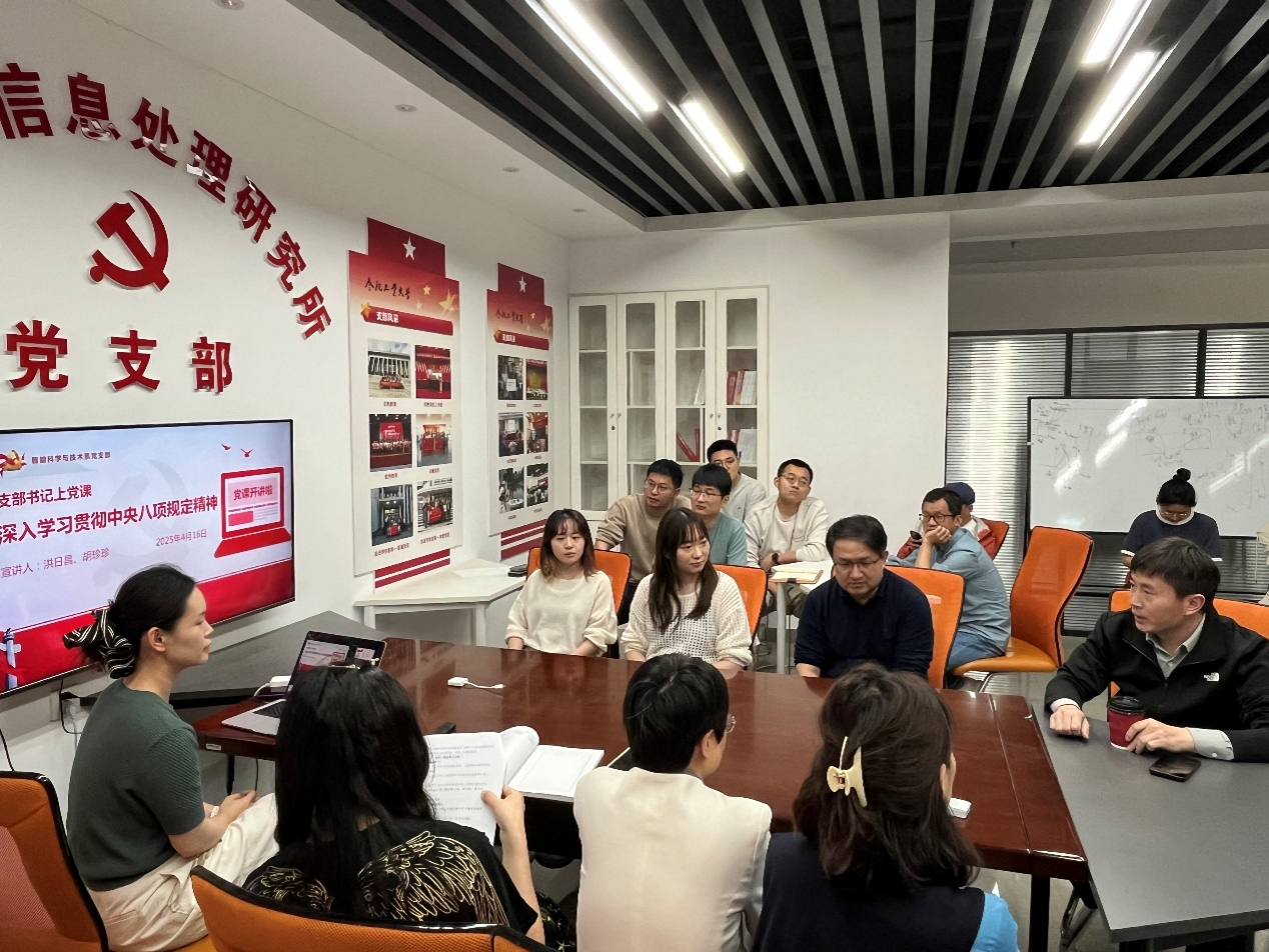 首先,党支部书记胡珍珍带领大家认真学习了中央八项规定的具体内容、核心精神以及实施细则。她强调,党员干部要从思想深处增强贯彻执行八项规定的政治自觉,持续转变作风、狠抓落实,推动形成风清气正的良好政治生态。