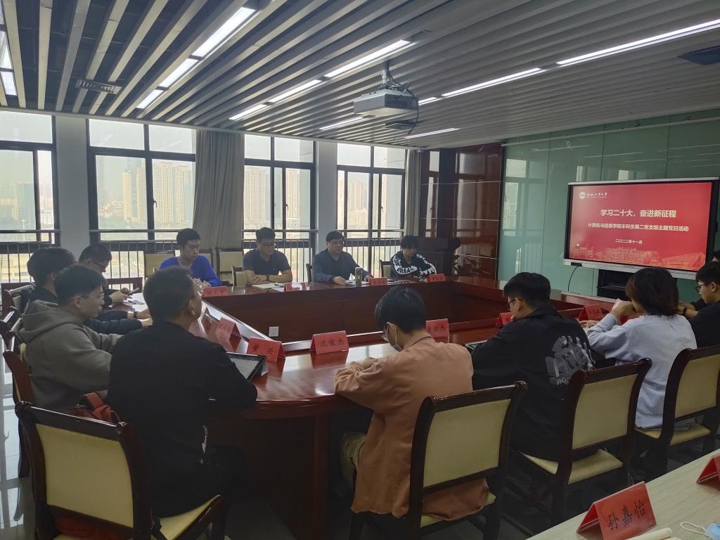 在翡翠科教楼A1106开展了“学习二十大,奋进新征程”主题活动,学院党委副书记兼纪委书记张海林、本科生第二党支部书记刘世国和党支部成员参加活动。