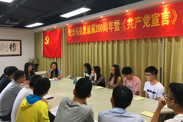 精心组织本科生党员代表、研究生代表和学院教师代表分别在翡翠湖校区科教楼A1106、A1102室收看了纪念马克思诞辰200周年大会。随后组织学生代表围绕大会内容进行了座谈。