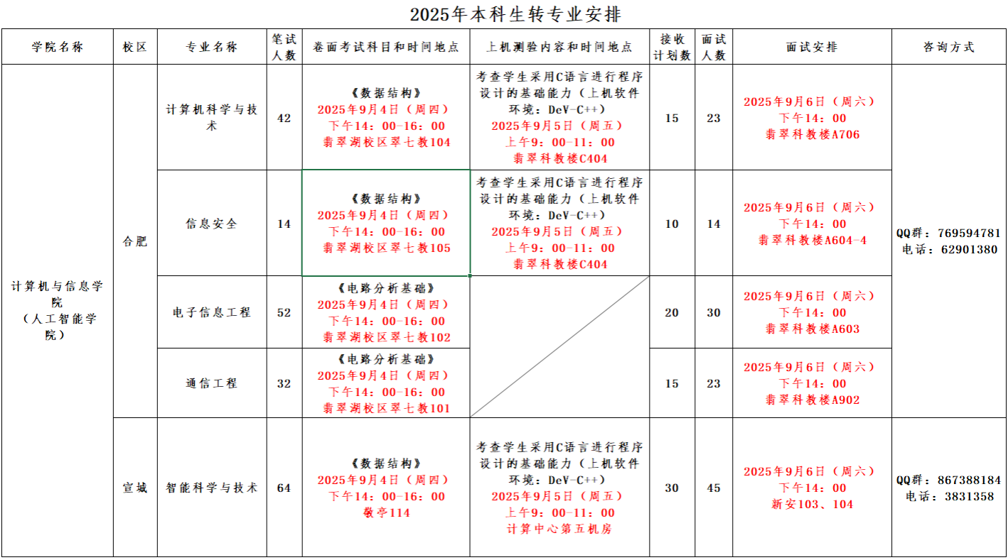 1.计算机科学与技术(合肥)、信息安全、智能科学与技术: