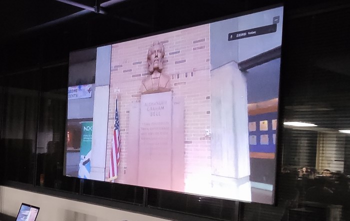 在贝尔实验室,留学生黄博士采用5G直播设备,对实验室的参观区域进行了介绍,讲解了贝尔实验室的发展历程,贝尔、香农、朱棣文等顶尖科学家的事迹,一批具有划时代意义的发明创造实物(晶体管、激光器、太阳能电池、发光二极管、数字交换机、通信卫星、电子数字计算机、C语言、UNIX操作系统等等)。黄博士还通过镜头展示了诺贝尔奖证书、科学家的手稿,以及众多重大科学事件的珍贵影像。