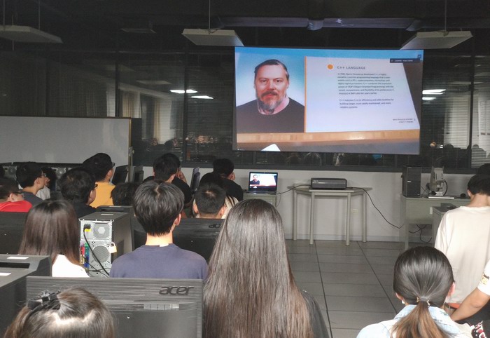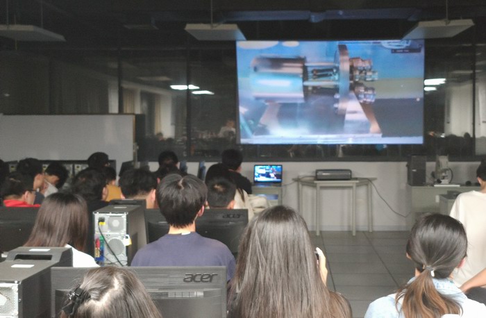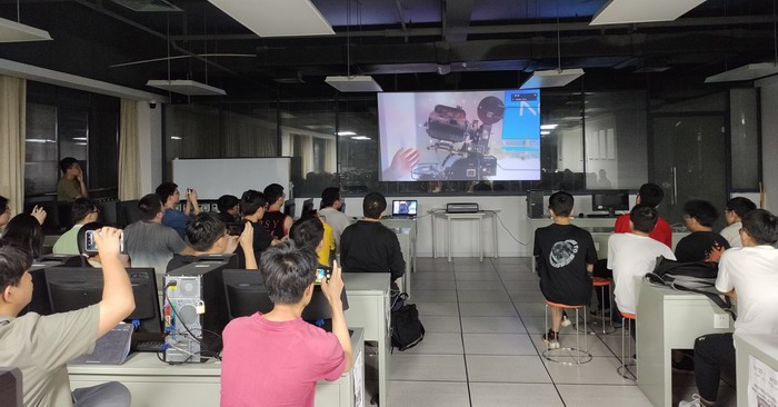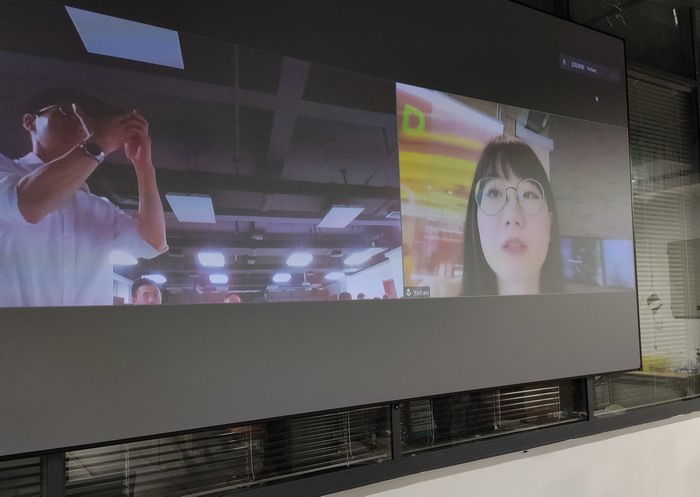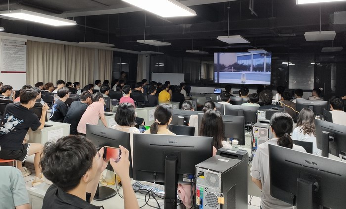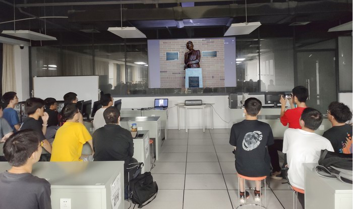 在学校侧,学院五位教师组织同学们在直播大厅,全程观看了介绍。同学们近距离感受了信息与通信技术的发展脉络、杰出成果、贝尔实验室的文化和魅力。在交流互动环节,黄博士就大学生如何投身科研工作,从能力储备方面给出了宝贵的建议。