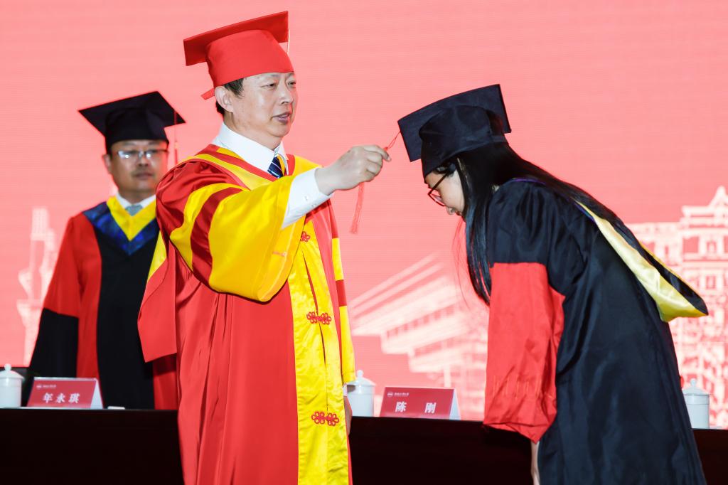 校党委副书记陈刚为获得博士学位的同学颁发学位证书