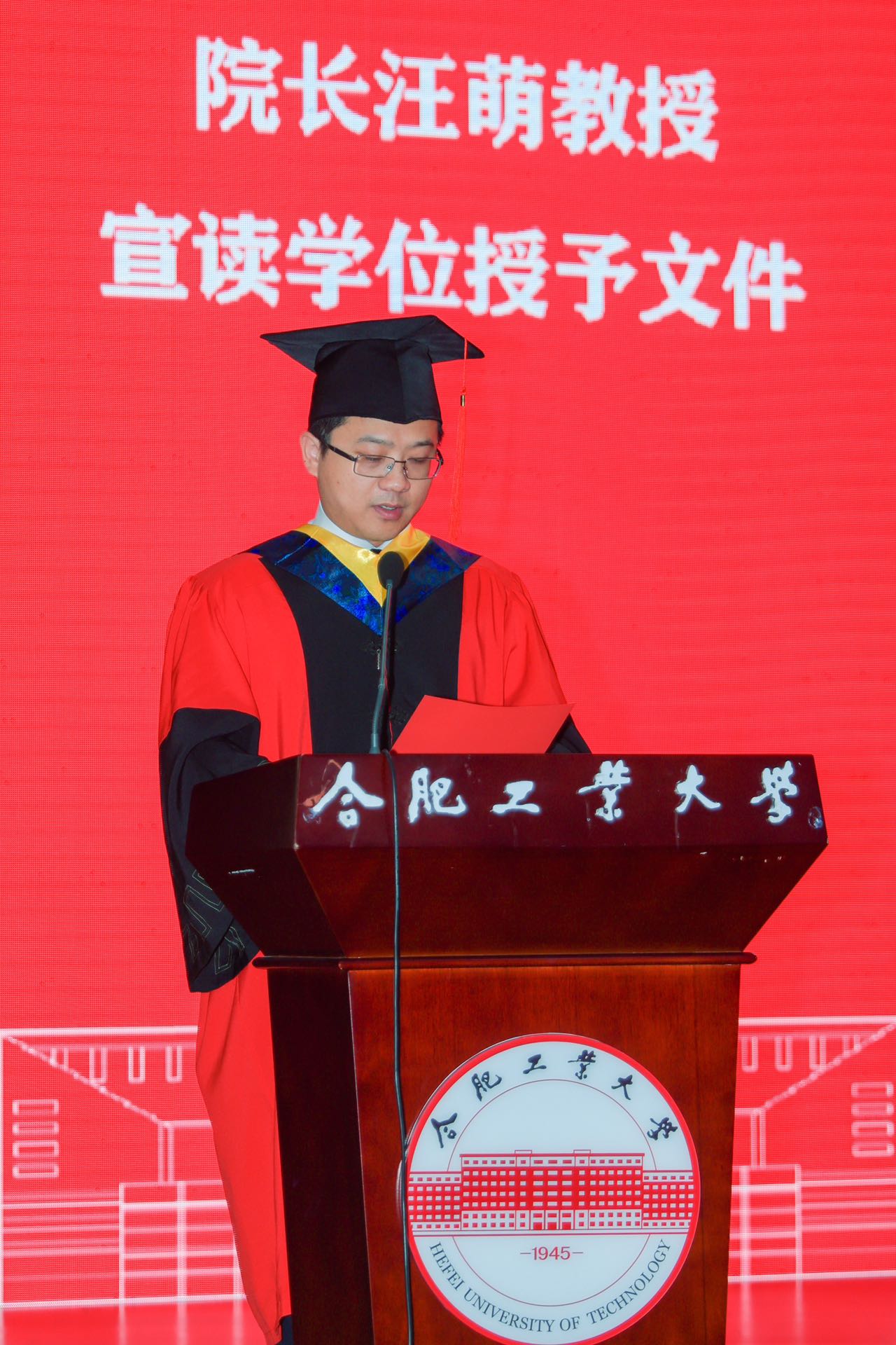 校党委副书记陈刚代表学校向圆满完成学业并顺利获得学位的各位同学表示热烈的祝贺,向辛勤培育他们的老师、父母、亲友表示衷心的感谢!他在讲话中指出,学校在习近平新时代中国特色社会主义思想指导下,紧紧围绕“培养德才兼备,能力卓越,自觉服务国家的骨干与领军人才”的人才培养总目标,深入实施“立德树人、能力导向和创新创业”三位一体的教育教学集成体系和第二课堂成绩单制度,“工程基础厚、工作作风实、创业能力强”的人才培养特色愈发彰显,“**一名领军人才”已成为学校创新人才培养的响亮品牌。