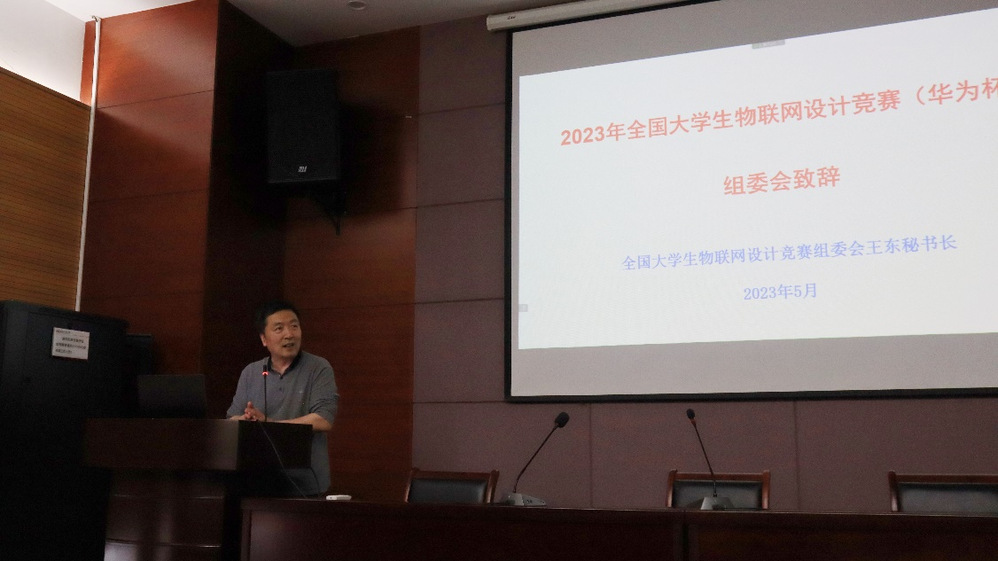 教育部计算机类教指委物联网工程专业教学研究专家组秘书长、全国大学生物联网设计竞赛组委会秘书长、上海交通大学RFID与物联网研究所所长、博士生导师王东教授代表组委会为活动致辞,回顾了2014年以来大赛办赛历程,分享了在技术储备、团队组建、校企合作等方面的宝贵经验,同时对学校在该赛事上的组织和成绩给予高度的赞扬。