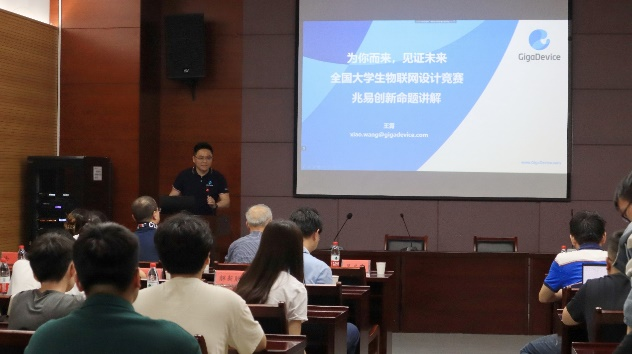 随后,兆易创新、广和通、乐鑫科技等物联网领域知名企业的6位技术专家,就兆易创新企业命题讲解与开发流程分享,广和通应用5G/4G标准模组建设物联网通信基座,乐鑫科技探究基于ESP32-S3的农业革新应用等物联网前沿技术进行了系统介绍,并对物联网技术研究与应用前景进行了分析,详细解读了赛题和资源支持。讲座中各企业专家与现场师生互动交流,就师生的问题进行了认真详尽的解答,现场气氛热烈,学术氛围浓厚。