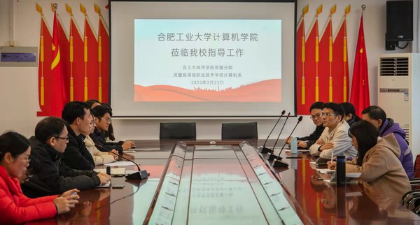 在灵璧县高级职业技术学校,工作团首先与学校教学管理部门进行了座谈,了解了该校在计算机专业建设方面的情况和主要困难;随后张赞老师为800余名学生做了“人工智能发展历程与应用”科普讲座;最后工作团与计算机系的十余名教师进行了教学交流,重点就计算机网络课程的教学方法、教材使用、实践教学进行了研讨,双方就如何改善“网络工程实习实训平台”形成了建设方案。