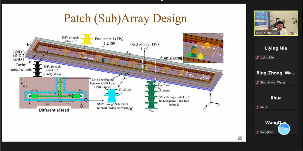 在报告会上,Lau教授从汽车天线的演进出发,对未来汽车天线的需求做出了详细的解析,并总结了汽车天线研发面临的挑战和机遇。会议中Lau教授还列举了其团队与沃尔沃合作研发的面向V2X的全玻璃车顶天线和毫米波MIMO雷达天线两款新型汽车天线,介绍了如何有效地利用特征模理论进行实际汽车天线的设计。报告结束后,线上师生与Lau教授进行了深入的交流。