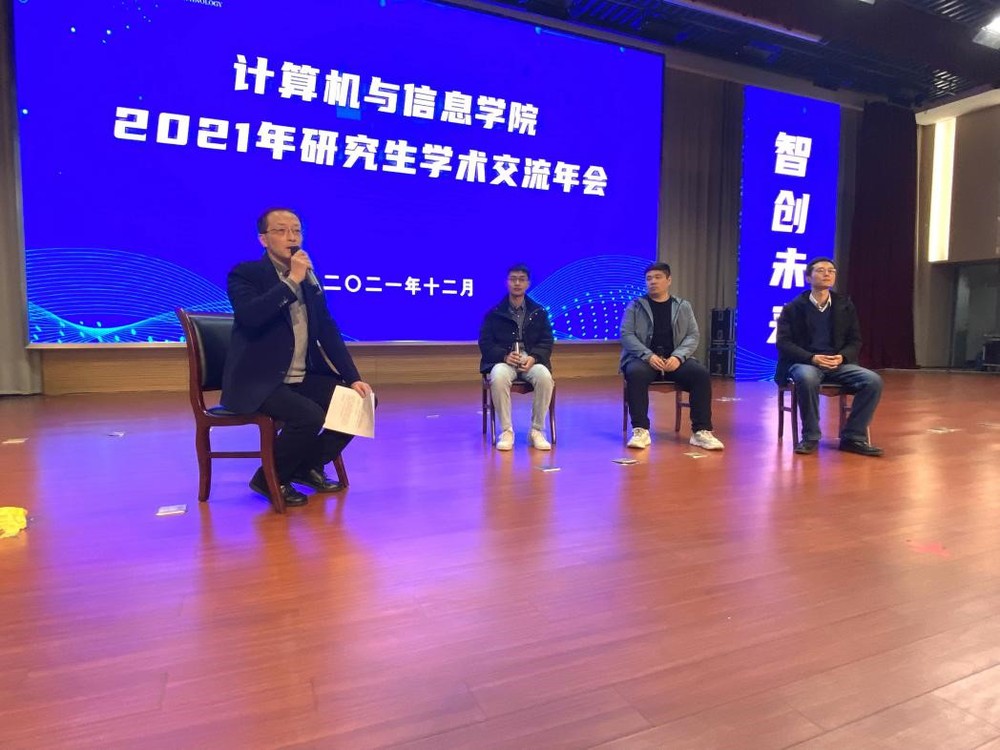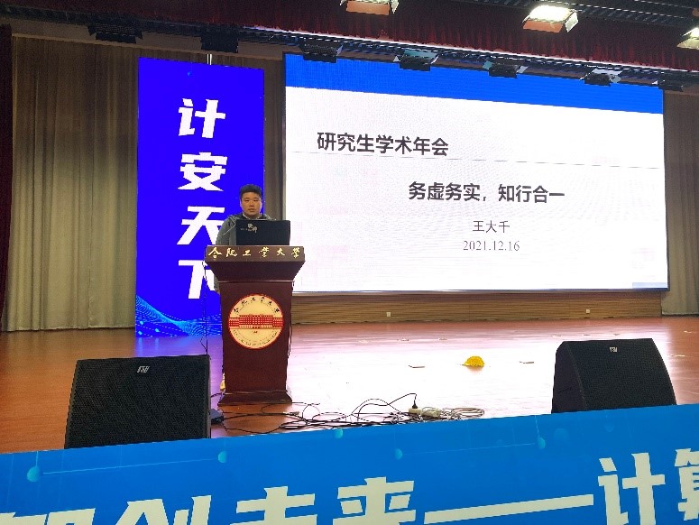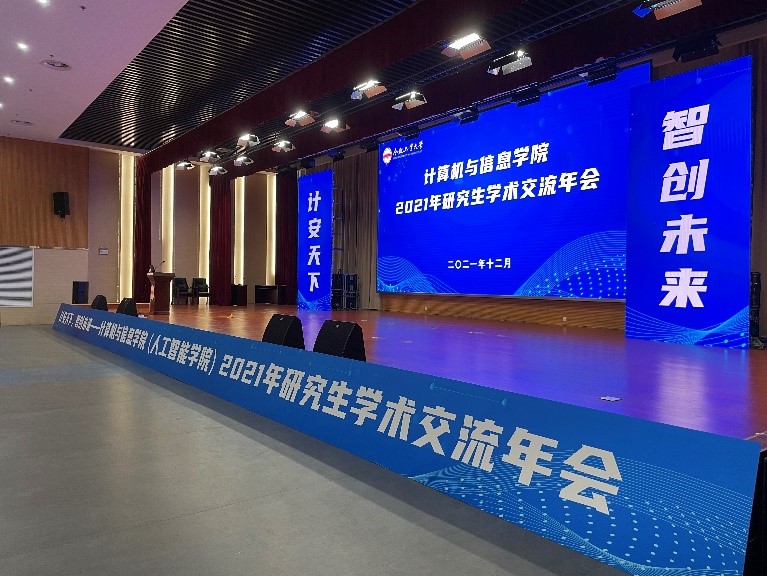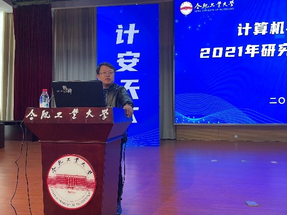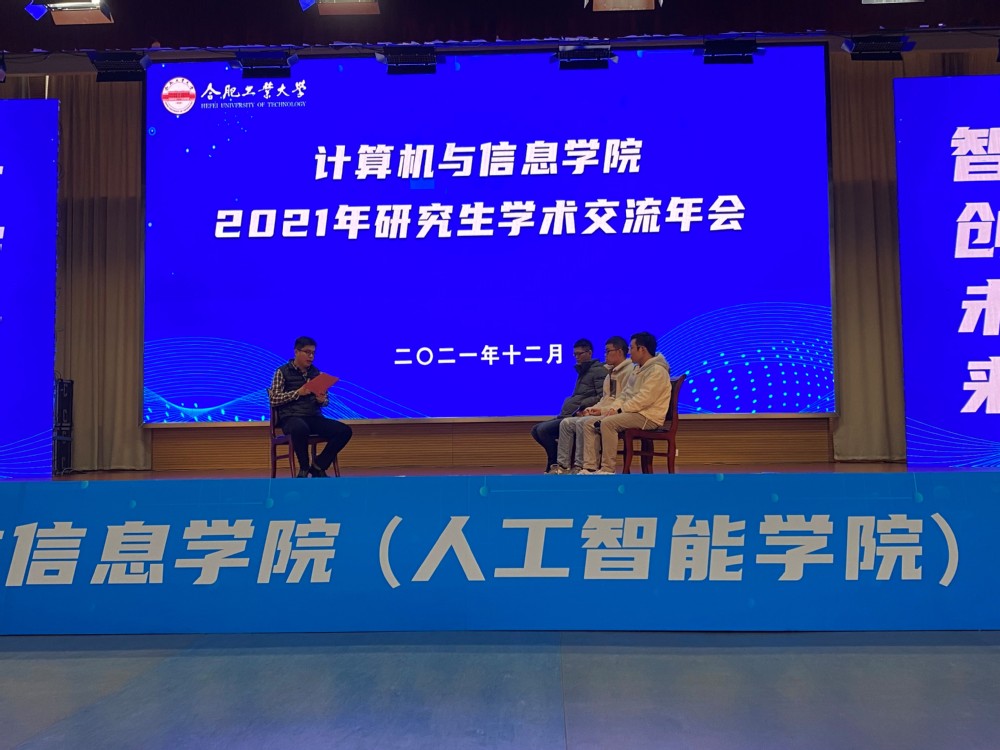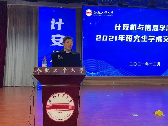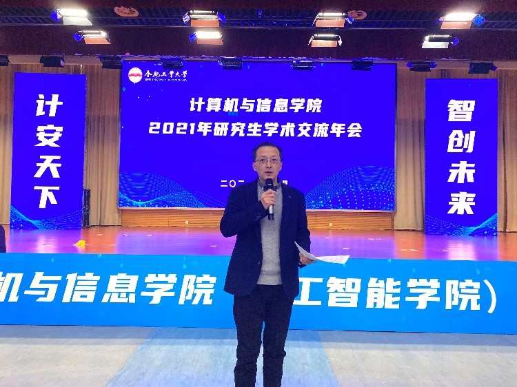 2021年研究生学术交流年会。计算机学院党委书记年永琪,副院长洪日昌,党委副书记、副院长张海林,副院长夏娜,软件学院副院长薛峰出席年会,特别邀请中国科学技术大学李厚强教授、合肥中科类脑智能技术有限公司邵梦副总经理作报告,路强副教授、吴克伟副教授等十余位青年教师及700余名研究生参加大会。