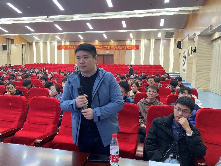 邵梦副总经理向大家做了关于前沿AI落地探索及创业实践的报告,从中科类脑成立背景与发展历程、创业中遇到的问题、人才择业这三个部分展开,在创业和就业方面提出了许多建设性的建议。报告结束后,夏院长和路老师提出了关于企业发展,人才招聘,合肥本地发展潜力等问题,同学们紧随其后提出了困扰着自己的问题,并且在交流的过程中获得了收获。