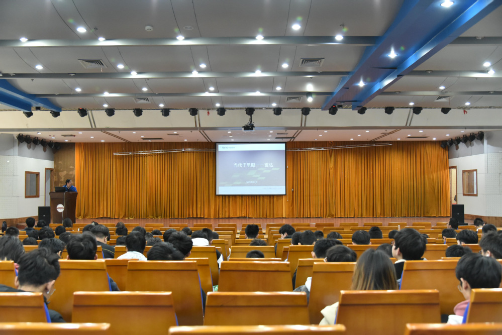 曹锐首席科学家以雷达技术的发展与大科学装置为主题,为学生详细介绍了相控阵技术演进进程,数字阵列技术在空间科学研究、雷达探测等领域带来了巨大变革。同时,以世界最大的射电望远镜SKA大科学装置及极限环境空间感知的毫米波相控阵列为视角,介绍国际前沿的百万单元级超大数字阵列与微小可扩展的片上数字阵列在体制、关键技术与应用方面的研究进展。