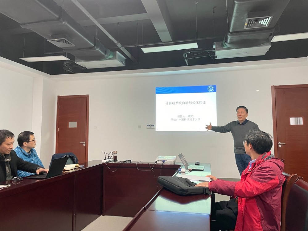 在报告会上,熊教授全面地介绍了其科研团队的最新科研成果,包括网络安全协议通用全自动形式化验证系统SmartVerif、该系统在区块链的应用情况以及未来软件和芯片自动形式化验证的进展。在报告会结束后,学院张仁斌、丁凉等老师与熊教授讨论了形式化验证的建模与移动互联网安全等一系列的问题。