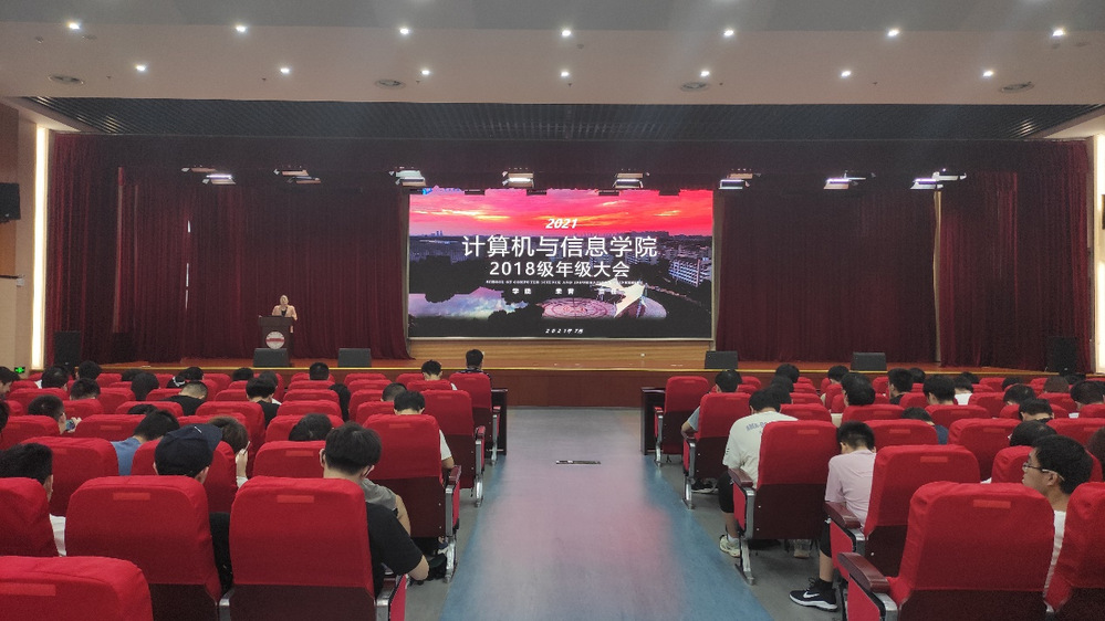 于翡翠科教楼A座二楼报告厅召开了2018级年级大会,2018级辅导员叶璟、杨炳新主持会议,p站