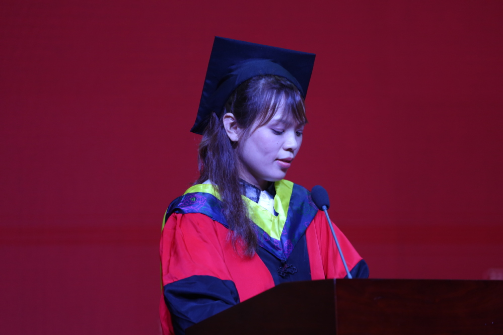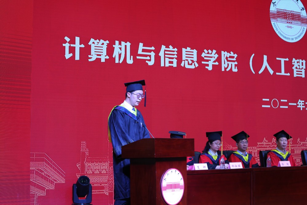 2017级计算机科学与技术专业本科生刘江山同学代表全体毕业生表达了对母校和老师的依依惜别之情,感恩学校、学院、老师的教育和支持,并承诺将以自己的实际行动,传承发扬计算机学子“学院、荣誉、责任”之精神,不忘初心,砥砺前行,弘扬新时代大学生的社会正能量。