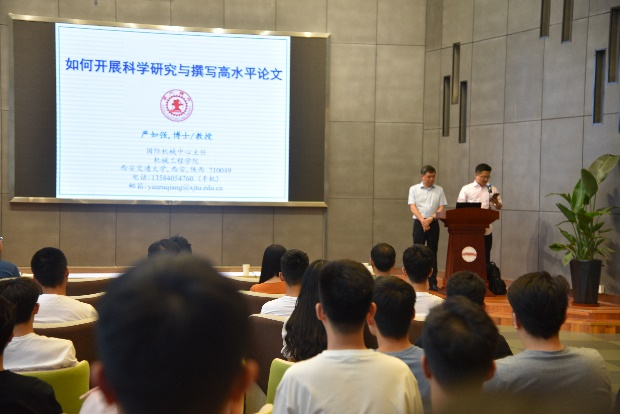在报告会上,严如强教授针对“研究生如何开展科学研究与撰写高水平论文”的话题,从基本的如何与导师有效沟通交流、如何查阅和跟踪研究领域文献、如何进行科技论文写作等方面进行了精彩的报告。并以其在智能诊断领域的最新研究成果:“基于小波核卷积神经网络的航空发动机锥齿轮故障诊断”为具体案例,从科技论文主题、构思和结构等方面进行详细讲解,为在场观众带来了有益的思考和启迪。