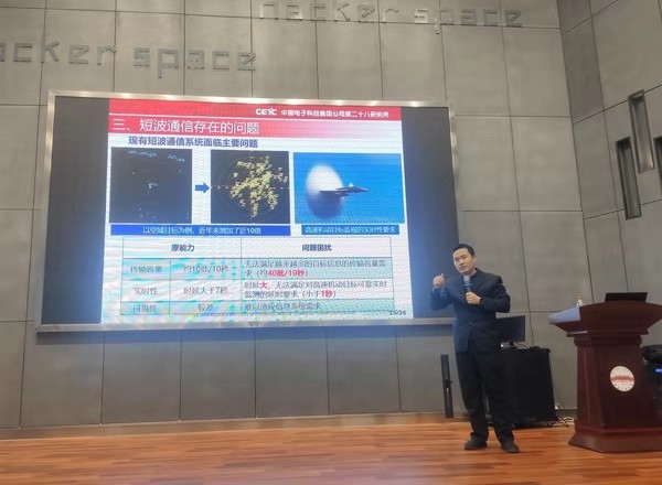 常老师从单位介绍开始,随后深入讲解短波、短波通信存在的问题、信源编码解决方案、现有进展和未来展望等。短波通信适用于中远距离传输,广泛应用于军事、救灾、外交、气象、远洋、渔业等领域。和主流通讯方式对比,短波通信因其固有特点存在诸多不足,与日常生活中主流通讯方式相比,短波传输速率低、传输时延大,通常运用于实时性要求不高的场合。在信源编码解决方案中,常老师介绍了信息压缩的理论。在现有的进展中,常老师介绍了自己的研究成果,比如“四层四环节”统一信源处理方法、基于语义和自适应熵编码的情报无损压缩方法、前向预测和精准匹配的全局时延控制方法、以及前向预测和精准匹配的全局时延控制方法。在未来发展中,结构化信息无损压缩是重点研究方向。报告最后,在座师生就感兴趣的话题和实际研究中遇到的问题和常老师进行了探讨和学习。