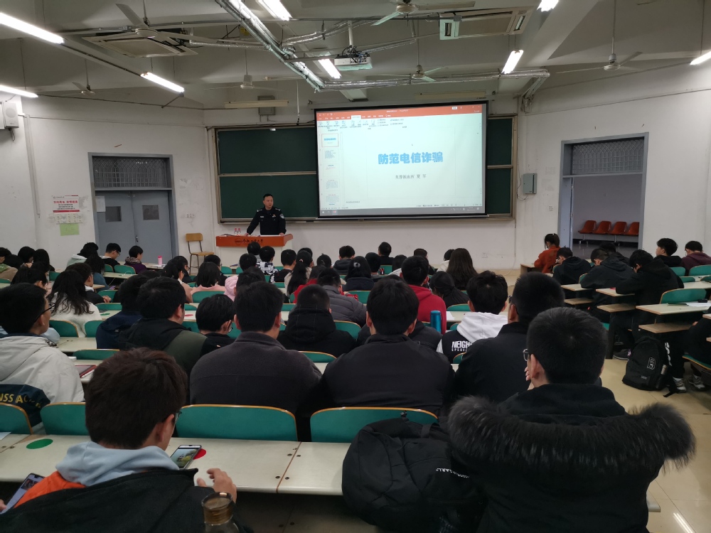 在翡翠湖校区9教101举办了“防范电信网络诈骗”主题报告会。经开区政法办主任赵恩兴、芙蓉派出所所长夏军、党委保卫部、p站