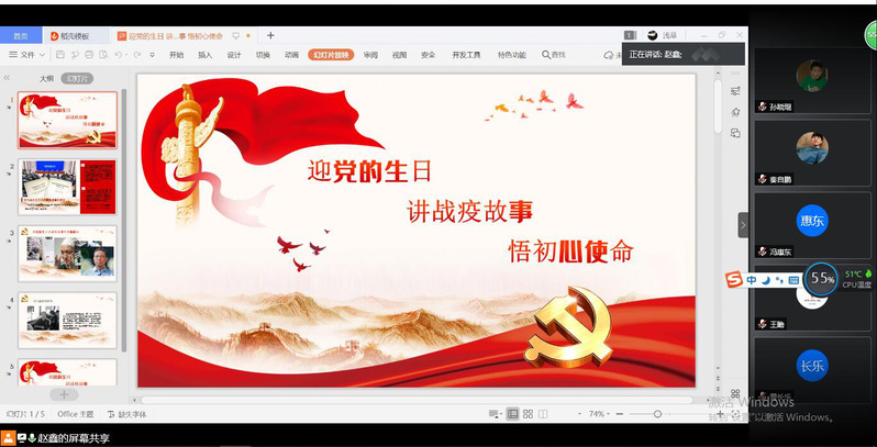 7月1日晚,为庆祝中国共产党成立99周年,通信工程专业本科生党支部召开云端组织生活会。此次会议以“迎党的生日、讲战疫故事、悟初心使命”为主题。