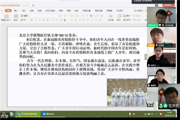 第一时间组织引领广大同学、学生骨干开展学习“习近平给北京大学援鄂医疗队全体‘90’后党员的回信”主题活动。习近平总书记的回信在p站