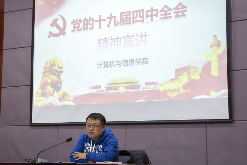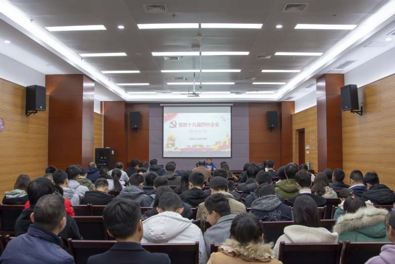 党委书记年永琪在翡翠科教楼第五会议室为教师和学生代表作“十九届四中全会精神”主题宣讲报告会。