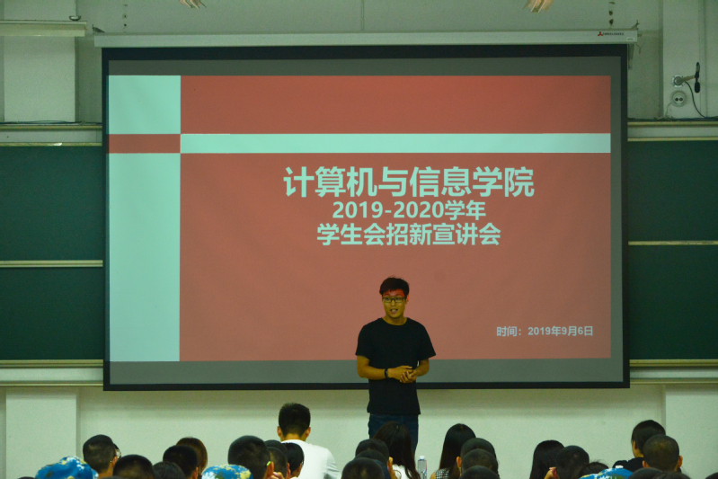 学生会于翡翠湖校区1号教学楼102教室举行2019-2020学年学生会招新宣讲会。学院学生会秘书长叶璟老师、2019级辅导员刘世国老师、2018级辅导员杨炳新老师以及院学生会主席李斐然出席本次宣讲会,2019级新生参与并听取本次宣讲会。