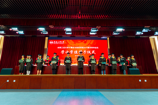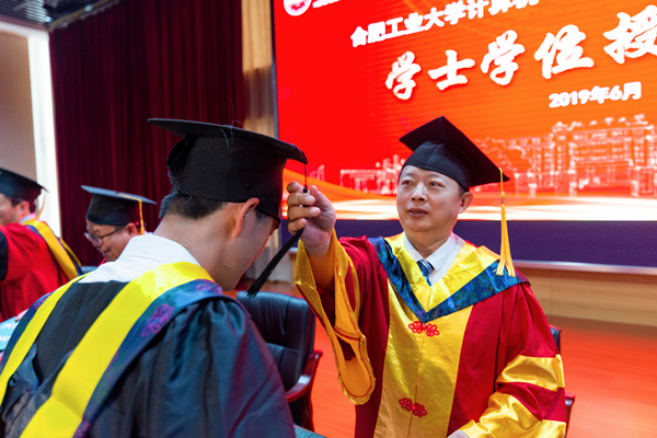 2019届毕业生学士学位授予决定》。之后,校领导与学院导师一起为全体学士学位获得者颁发学位证书,扶正流苏并合影留念。