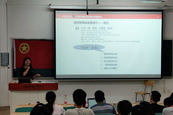 会议在庄严肃穆的共青团歌中拉开序幕,会议从“认识新时代共青团工作”、“认识团学新媒体工作”、“团支部活力提升路径”三大版块主题进行宣讲,全体团干部在仔细学习、认真思考的过程中,加强了对团务工作的认识,激发了作为一名基层团干部的光荣感和使命感。学院团委书记黄晨在会议中指出网络时代背景下,共青团的发展也存在着风险与挑战,如何做好新时代共青团的思想引领工作是我们团干部的工作重点与难点。应对这种新形势,她提出要顺应时代的变化,积极以各种创新方式开展共青团工作,以此吸引更多青年人。