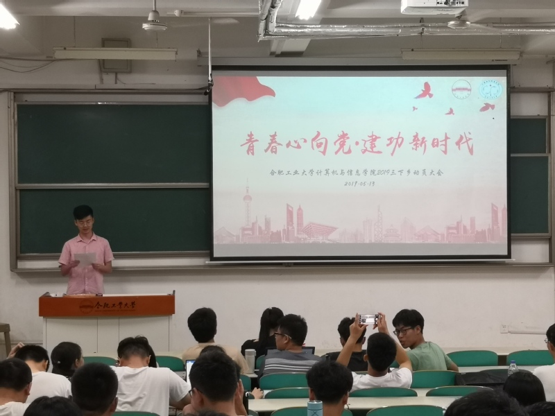 于5月13日晚7点在翡翠湖校区举办“青春心向党 建功新时代”2019年大学生暑期“三下乡”社会实践活动动员大会。院团委负责老师及学院本、硕学生参加了本次活动。