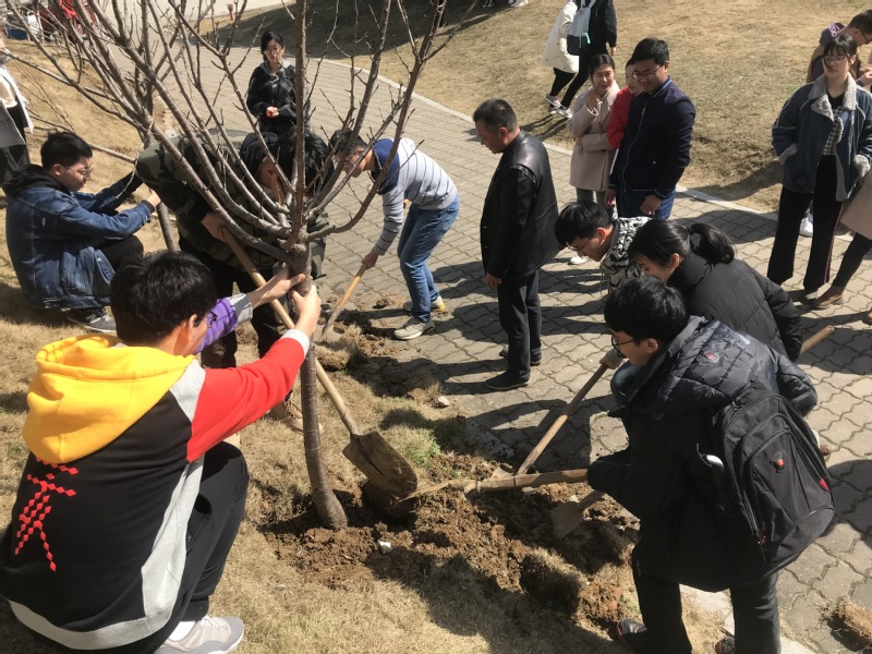 植树护绿行动在院团委老师和后勤工作人员的指导下有序进行,相关负责人对植树流程、栽种要点、人员分工、安全事项进行详细讲解。在专业人员的指导下,志愿者们分工明确、干劲十足、齐心协力,栽种上一棵棵充满生机和希望的树苗,并将写有各支部名称的红丝带和心愿纸系在树枝上,为校园环境增添了一抹生机。