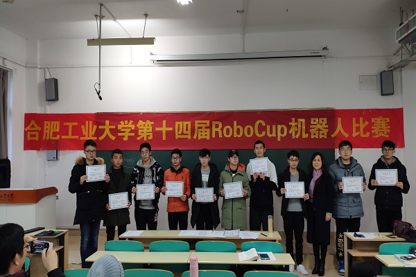 第十四届RoboCup机器人大赛决赛在翡翠湖校区10教201成功举行。教务处副处长、创新创业教育中心主任黄景荣,创新创业教育中心副主任徐慧,p站