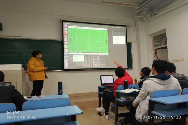 颁奖结束后,18级李奕威同学代表获奖同学发表了自己的获奖感言,表示只要感兴趣,投入时间,多思考,多调试,更多更好的比赛策略就会油然而产;他同时也总结了自己球队的不足,希望以后可以进一步改进。黄景荣副处长最后作了总结发言,指出机器人及机器人足球比赛已经是我校的一块品牌,在国内外的大赛上取得了优异的成绩,是团队多年积累的结果。校机器人足球比赛举办了十四届,每年的参与学生覆盖面非常广,很多同学都从中受益。他勉励参赛同学,校内比赛只是一个起点,希望同学们在老师的指导下,继续努力,在不断增加自己能力的同时,也为学校争取更大的荣誉。