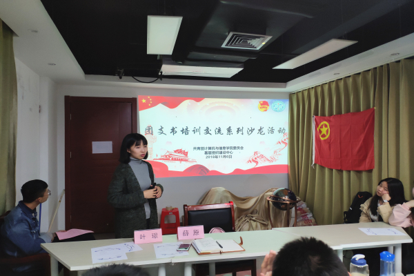随后,2017级团支书代表谢飞、邓雅文分别与参会人员分享了团支部建设的经验、团日活动的开展过程及新闻稿撰写的相关内容;强调建立班级“家”文化的重要性,强调团日活动的思想引领作用。经验分享活动后进行了自由提问环节,同学们积极发言,提出工作中的困惑,积极参与到讨论与提问中;提问结束后,团学组织秘书长薛原对本次活动进行总结补充,并针对新闻稿的撰写、团日活动开展的方式等内容进行进一步讲解。薛原强调,团支书需要明确自身职责,熟悉团章规定,按时组织班级团员缴纳团费和组织相关理论学习活动。通过丰富多彩的团日活动,不断提高班级的凝聚力,做到以团日活动为契机,引领班级思想和文化建设,提升班级创造力。