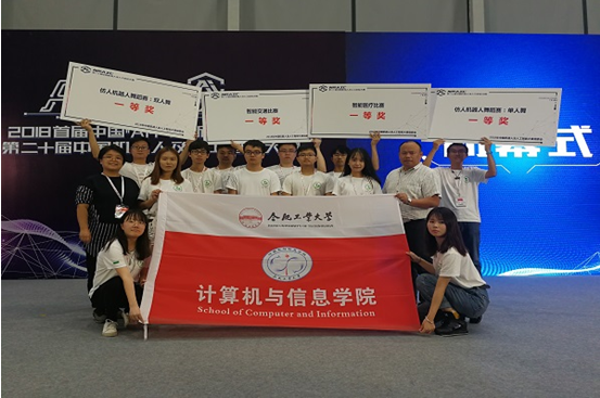 和软件学院组成的HfutEngine队一行14人参加8个子项目。最后夺得智慧医疗比赛、智能交通比赛、仿人双人舞蹈等3个项目冠军,仿人单人舞蹈项目季军;获得机器人类创新比赛项目、机器人短跑、机器人障碍跑比赛和机器人点球比赛二等奖各1项,另外获得机器人障碍跑三等奖1项,机器人创新比赛和短跑比赛优秀奖各1项。