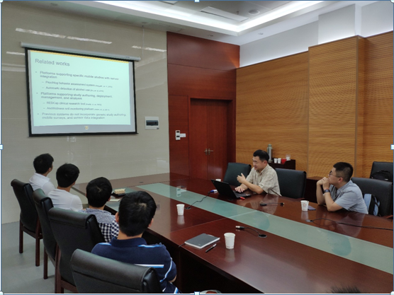国家智慧养老国际科技合作基地杨矫云老师邀请,2018年7月3日下午15:00,美国密苏里大学Yi Shang教授在翡翠湖校区翡翠科教楼A座第一会议室做了题为“TigerAware: An Innovative Mobile Survey and Sensor Data Collection and Analytics System”的报告。学院相关教师、研究生、本科生聆听了报告。