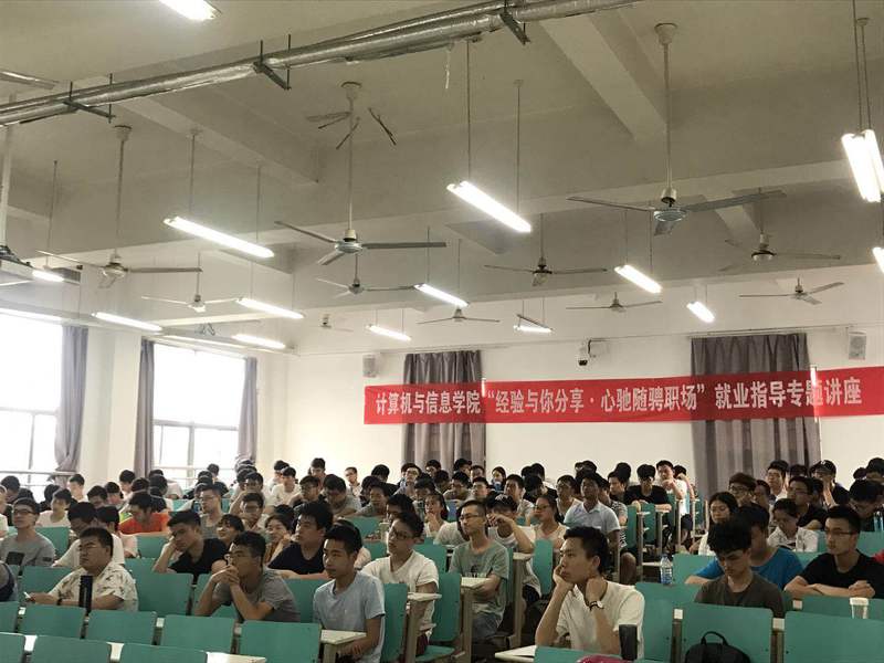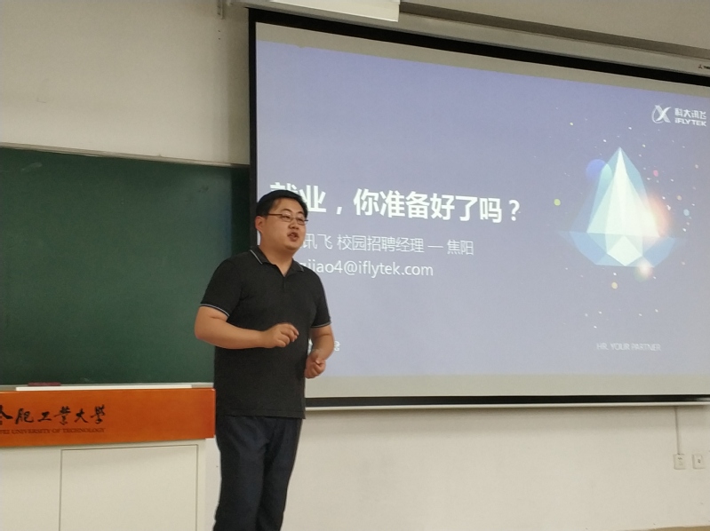 在翡翠湖校区十二教106教室举办 “经验与你分享 心驰随聘职场”就业指导专题讲座。此次讲座由科大讯飞校园招聘经理焦阳主讲,15级辅导员陈曾珍主持,2015级本科生参加。