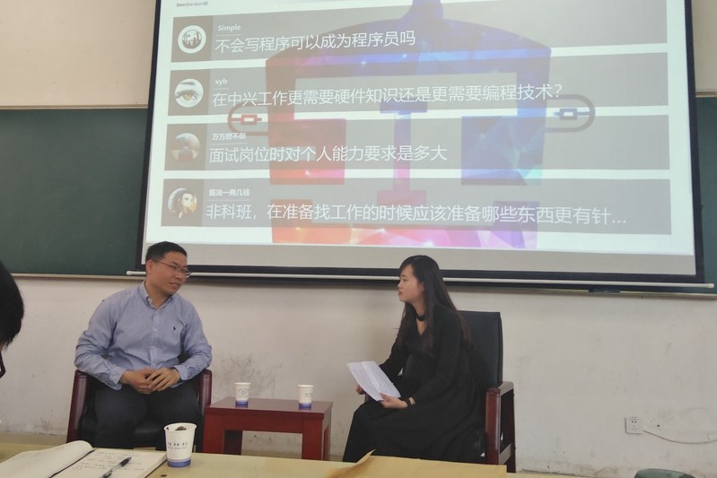 活动开始前,院党委副书记年永琪与嘉宾进行了短暂的会面,对嘉宾的到来表示感谢。院研究生辅导员刘丽华老师对中兴嘉宾的到来表示欢迎,并希望同学们可以从此次讲座活动中学到职场“干货”,实现自我成长,在以后的职场大展宏图。