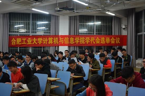 于11月6日晚8点在十一教102召开学院第十二次学代会代表选举会议。学院团委老师、院学生会代表、二十二名学生代表候选人和七十六名学生代表参加会议。