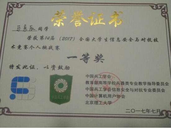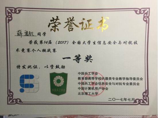 赢得了荣誉,如在成立之初的2016年,C1SEC即参加了第13届全国大学生信息安全与对抗技术竞赛(ISCC2016)和安徽省“蓝盾杯”信息安全攻防赛,并分别荣获二等奖。进入2017年以来,C1SEC更是在一系列大赛中斩获多项奖牌,为集体更是为p站