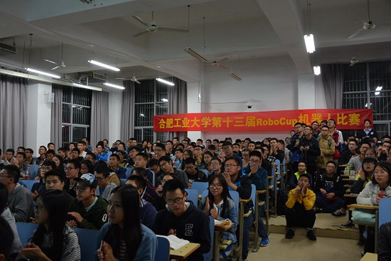 方宝富老师首先为学生简要介绍了Robo Cup机器人足球赛的历史、规则及理念。让与会学生了解到了机器人足球赛的历史、发展及现在的影响力。之后方老师着重讲述了我们学校的机器人足球赛队伍HfutEngine的历史及辉煌成就,我校也是全国唯一一所连续十年在2D和3D领域均进入世界杯的高校。之后是两位经验丰富的研究生进行发言,分别讲述了2D和3D的机器人足球比赛的形式和内容,并且播放了一些比赛视频,看着屏幕上的机器人在激烈的拼抢足球,与会同学们产生了极大地兴趣。通过这次宣讲会,也点燃了许多同学们报名参赛的热情。