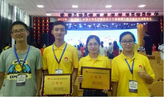 学子组成的2支队伍经过校赛、省赛的选拔获得参加国赛资格。参赛作品《浅析黑客技术》(作者吴婉晴、陈晨、夏守恒,指导老师刘正琼、吴永忠)和《Premiere视频过渡方法介绍》(作者陆玉康、柏林、任恒,指导老师程文娟、杨静)分别获得第十届中国大学生计算机设计大赛微课与教学辅助组三等奖的好成绩。