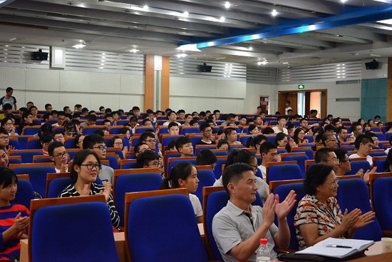 的师生进行交流,并在翡翠湖校区图书馆报告厅为学院六百余名学生代表做了题为“太空高边疆控制利用与太空安全分析;科技创新实现强国梦——追寻我的青春梦与行”的学术报告,报告会由校党委学生工作部部长田合雷主持,学校及学院相关领导老师出席报告会。