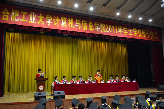 2017届本科生学士学位授予仪式在屯溪路校区斛兵礼堂举行。副校长吴玉程、学院负责同志及部分老师出席此次学位授予仪式。