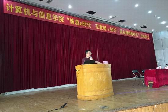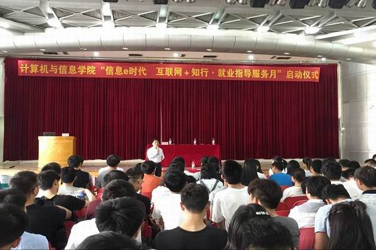 举办了“信息e时代,互联+知行”2018届毕业生创业就业指导服务月启动仪式。学院副院长杨学志、学院党委副书记何庆领、年级辅导员及2014级全体同学参加了仪式。