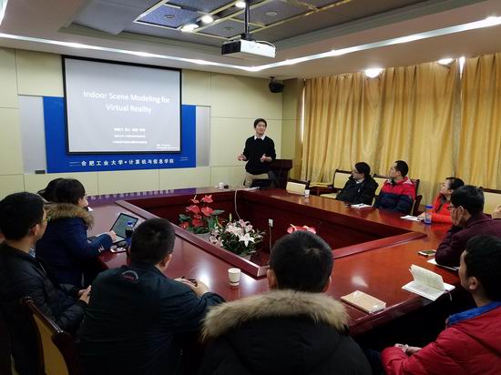 邀请,南京大学计算机科学与技术系、软件新技术国家重点实验室郭延文教授在逸夫楼408会议室做了题为“虚拟现实中的室内场景几何和材质建模”的学术报告。报告会由p站