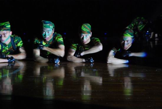 节目《出击》用充满蓬勃的热情和磅礴的气势的舞蹈,抒发了悲壮豪迈的英雄气概,表现了我们的军人不畏牺牲、甘于奉献的奉献的精神,用自己的血肉之躯,铸成保家卫国的钢铁城墙。演出现场气氛热烈,不时爆发出阵阵热烈的掌声。为了献上完美的演出,16级的同学们排练了一个多月的时间,不顾胳膊和膝盖的酸疼,付出了巨大的努力。这震撼人心的舞蹈是同学们汗水和心血换来了的优秀成果,最终p站