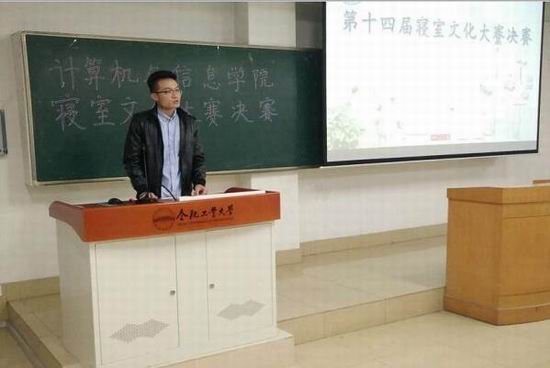 第十四届寝室文化大赛决赛在翡翠湖校区5教306举行。决赛的评委组包括16级辅导员杜欣鹏和学院团学干部代表,另外参加这次决赛的还有经初赛选拔出学院11个优秀寝室和部分学生代表。