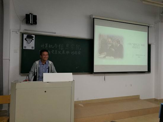第56期党员发展班于6教103开展了党校培训的第一次讨论会,本次讨论围绕“《共产党宣言》导读”这一主题展开,会议由班长主持,党员发展班40名同学参与本次讨论会。