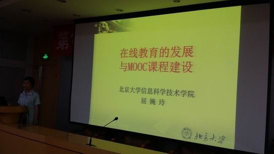 会议邀请了北京大学信息科学与技术学院离散数学与算法设计课程资深教师屈婉玲教授做了题为“在线教育的发展与MOOC课程建设”大会报告,报告结合离散数学与算法设计这两门计算机核心课程特点,全面系统地介绍了北京大学MOOC课程建设的过程、重点和难点,屈老师的报告内容丰富、翔实、具体,而且生动有趣,深受与会者的欢迎。随后,屈婉玲教授与p站